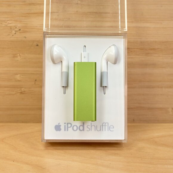 This Apple iPod Shuffle 2GB (Model A1271) in green is a compact and lightweight MP3 player, perfect for music on the go. It comes as a bundle with USB dock and earbuds. Ideal for workouts, travel, or everyday use.