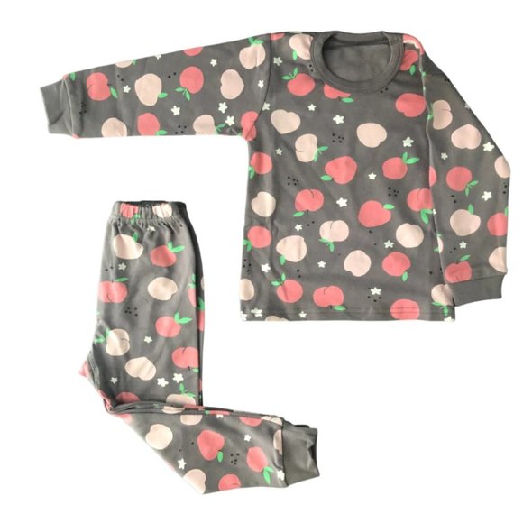 T-shirt has rib-knit crew neck with long sleeves. Elasticized waist pants with banded hem leg opening, rib-knit waist and rib-knit cuffs.