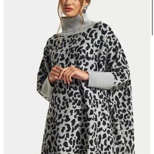 Apricot Animal Print Poncho with Polo Neck and Long Sleeves women One Size