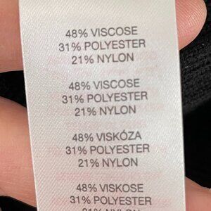 Features: pull over, knit, long sleeve, mock turtleneck, ribbed, single 9.75" side slit, 4 metal button detail on cuff, midi, viscose polyester blend, form fitting, cozy