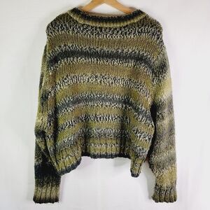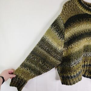 Stay cozy and stylish with this striped chunky knit gradient moss greens cropped sweater. GUC