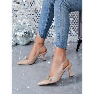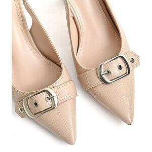 Sleek Closed Pointed Toe Slingback Heels: Our slingback pumps heels feature a closed pointed toe silhouette, exuding sophistication and charm, while the buckle strap adds a dash of coolness and allure.
