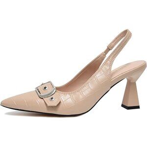 Sleek Closed Pointed Toe Slingback Heels: Our slingback pumps heels feature a closed pointed toe silhouette, exuding sophistication and charm, while the buckle strap adds a dash of coolness and allure.