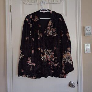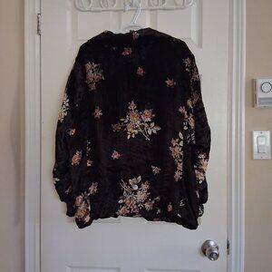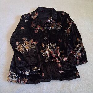 April Cornell Black Floral Crushed Velvet Blazer XXL