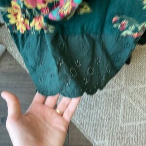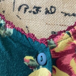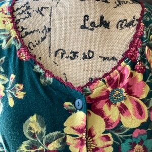April Cornell floral Sikkem Dress for Modern Prairie. Dress has no tags so please see pics for approximate measurements. In EUC! The details are superb and so April! From the lovely crochet trim around the neckline, to the eyelet lace on the bottom. Buttons all the way down. Can be worn open as a lovely layering piece, or buttoned up as a dress.