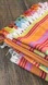 Bright dining cloth with colorful stripes. Features fringe detailing.