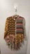 Beautiful patchwork tunic by April Cornell featuring a mix of floral, gingham, and stripe prints in warm earthy tones. Button-down front, collared neckline, and a flowing asymmetrical tiered hem. The back showcases multiple floral panels for a one-of-a-kind boho look.