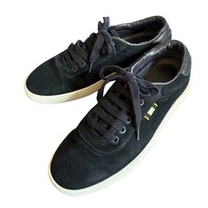 Color: Black suede with tonal leather trim and contrast off-white sole