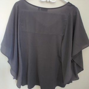 Apt. 9 Charcoal Top. Soft Flowy Butterfly Sleeve. Sheer sleeve and back panel