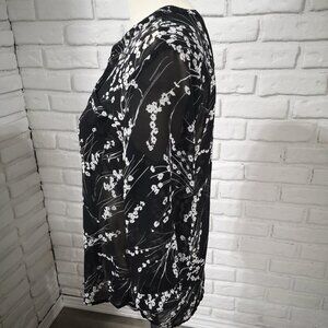 Apt 9 Ladies Black & Grey Flower Pattern Size Large V-neck Sheer Blouse