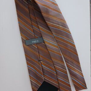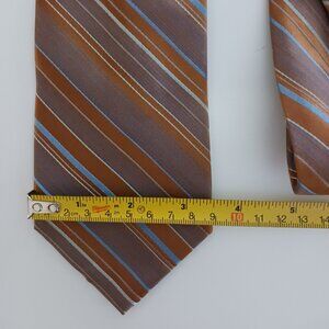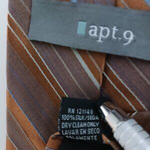 Apt 9 Mens Silk Tie Brown Gold Blue White with Silver Striped Pattern 3.5 X 61