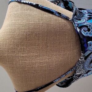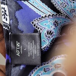Apt 9 Beautiful Print Babydoll Chemise/Lingerie with lace trim adorned with a blue bow, has an adjustable straps, in size Large from smoke, pet and bug free home.
