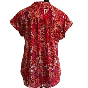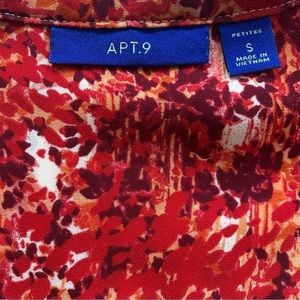 Apt. 9 red orange abstract pattern V neck short sleeve blouse. Petite S
