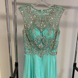 Aqua Blue Dress Size 6 Worn Once, Gorgeous, Beaded Bodice