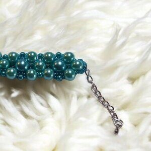 Aqua Blue Faux Pearl Woven Artisan Beaded Bracelet