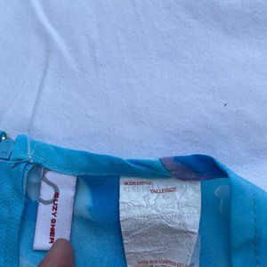 Aqua blue floral sheer midi skirt, size 5-6. Vintage Suzy Shier brand from 90s, super beautiful. Midi-length, unlined but not too sheer. Zipper closure at back, high waisted fit.