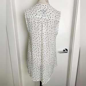 Semi-sheer White Buttonup Sleeveless Princess Vest Smock Shirt Blouse with Black Velvet reverse Burnout Heart Print, by AQUA.