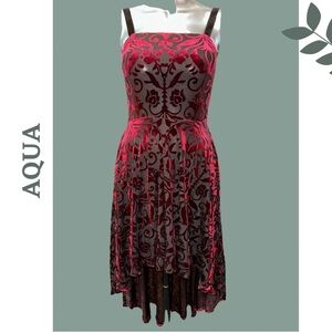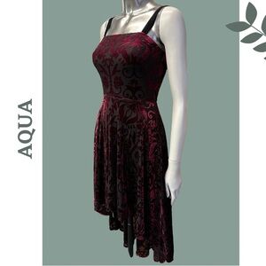 Aqua Burnout Velvet Baroque Burgundy Black High Low Lined Dress Stretch Small
