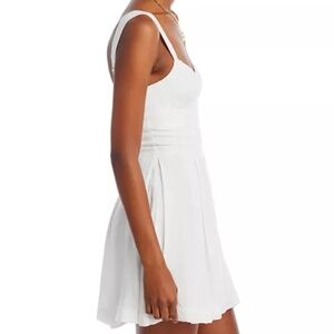 Aqua Corset Lace Up Stitched Straps Linen White Mini Dress - 100% Exclusive S