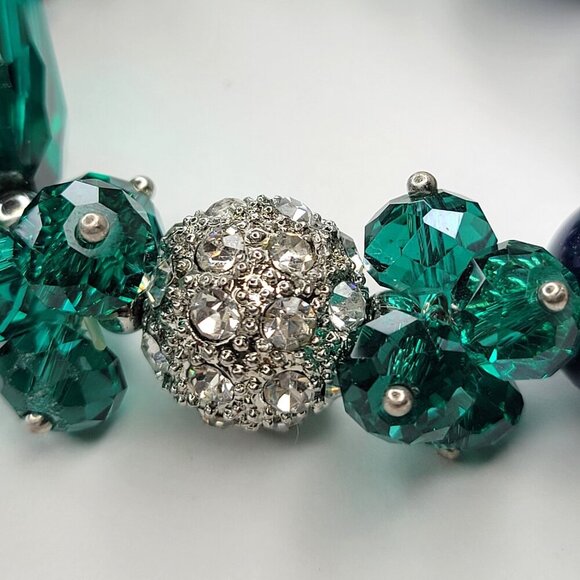 Aqua Green Crystal Faceted Glass Bead Stretch Bracelet