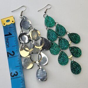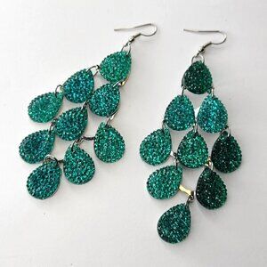 Aqua Green Dangling Long Earrings Light Chandelier Earrings