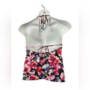 Aqua La Vie En Rose, Floral Halter Tankini Top, Size XL, Black, Pink