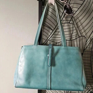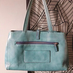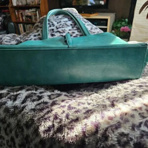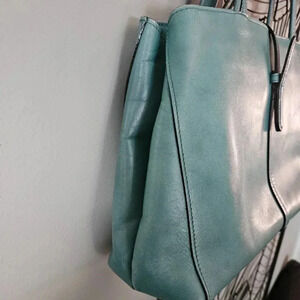 Aqua Vegan Leather Tote Shoulder Bag with Lots of Pockets - Medium Size