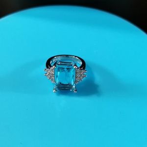 Aquamarine accent with 5 cluster stones on both sides