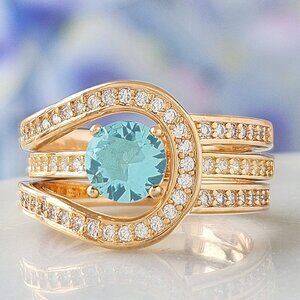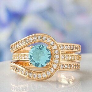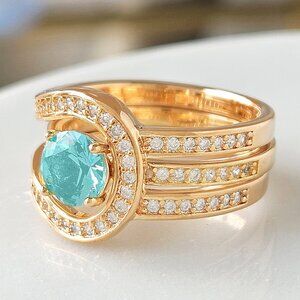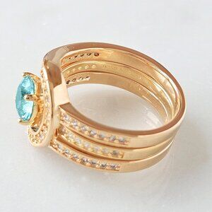 Aquamarine Blue & Teal Gold Ring Set, 925 Sterling Silver finished in 10k gold