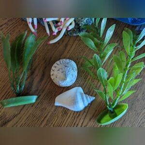 Aquarium decor lot, artificial Coral, gravel, artificial plants & shells