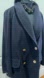 Chic navy blazer with gold button details. Classic double-breasted style. Perfect for a polished look.