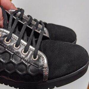 Suede upper/textile lining/rubber sole.