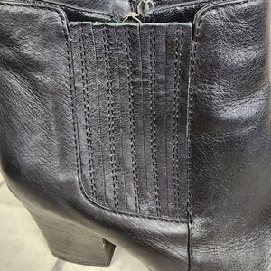 Aquatalia Black Leather Ankle Boot Side Zip Almond Toe Size 7 1/2 Made in Italy