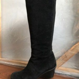 Aquatalia Black Suede boots , Size 5, Made in Italy, Black suede, rubber wedge heel, side zipper, elastic back