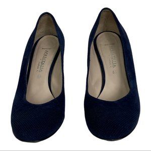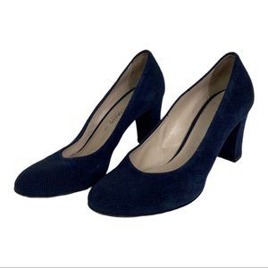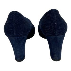 Aquatalia Blue Suede Studded Block Heel Pumps Size 6.5 Marvin K Beaded Platform