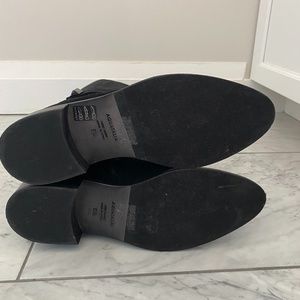 Suede and stretch zip boot detailed with strap and gunmetal hardware on a leather stacked heel. Rich leathers and versatile appeal make the Giada boot perfect for winter-wear. Excellent condition, may have been worn once or twice- flawless. Stored in branded dust bag (included).