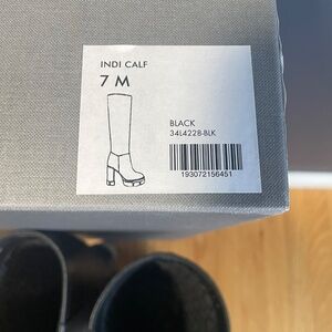 Knee-high waterproof, stylish leather boots, 3.5 inch heel, 1 inch platform. Comfortable block heel. In like new condition. Made in Italy. The box is a little worn.