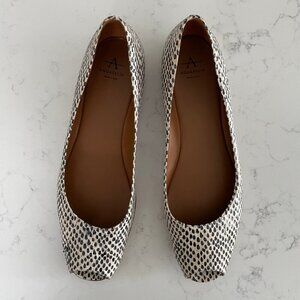Aquatalia Peek A Boo Toe Slip On Snake Dot Print Leather Shoes Blk & Wht Sz 9