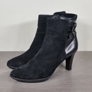 Aquatalia Roma Weatherproof Bootie, Black Suede & Leather, Womens Size 9 M