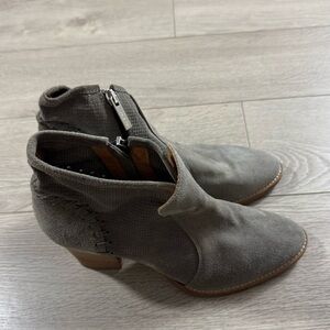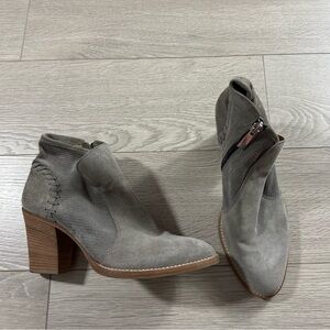 Aquatalia Suede Ankle Block Heel Taupe Booties