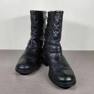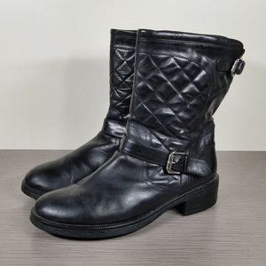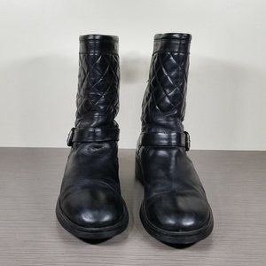 Aquatalia Sweetness Short Quilted Moto Boot, Black Leather, Womens Size 8