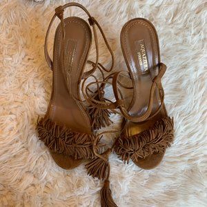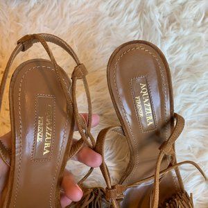 Aquazurra Brown Wild Thing Fringe Sandals Heels