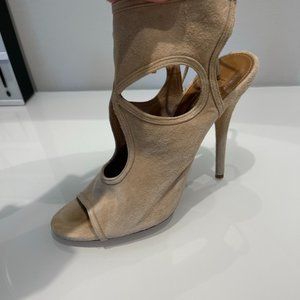 Aquazzura Sexy Thing Tan Suede Cutout Tie Back Sandals
