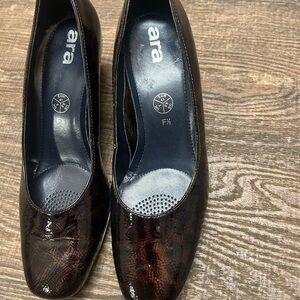 Ara Brown 9.5 NWOT “Luftpolster” Patent Leather Heels printed design underneath