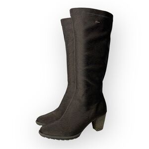 Ara's Tegan boot offers sleek, sophisticated style that hogs the spotlight with its simplicity. An unadorned upper is added extra appeal by the 2.5-inch heel and the tapered toe. A side zipper allows for easy dressing, while the saw-tooth sole in rubber adds superior traction to sassy walks. Make a statement without saying a thing in Tegan.