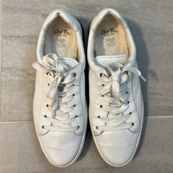 Ara Woman's White Super Soft Leather Sneakers Size 9