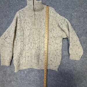 Aran Crafts Ireland Cream Wool Sweater Half Zip Cable Knit Size Large