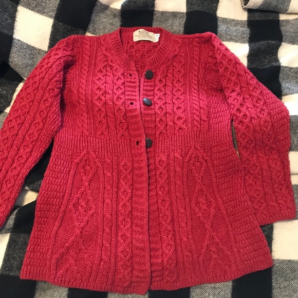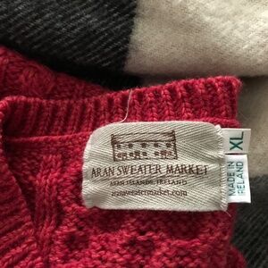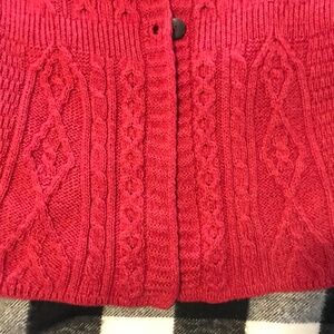 Beautiful red cardigan, it says XL on the label but it is a large, not quite big enough to fit an XL 42” bust. It is an excellent used condition with hardly any signs of wear. I am selling because of the size being a bit tight on me. I washed it properly and blocked it so that it is ready for resale.