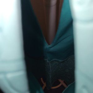 Beautiful intricate laser cut etched design. See close up photo for pattern details! Material has a little stretch, and is medium density -not too lightweight but not heavy. Mid-inner lining up to the bottom of the chest and back area.