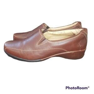 Aravon by New Balance Tia Brown Leather Slip on Loafer Comfort Shoe